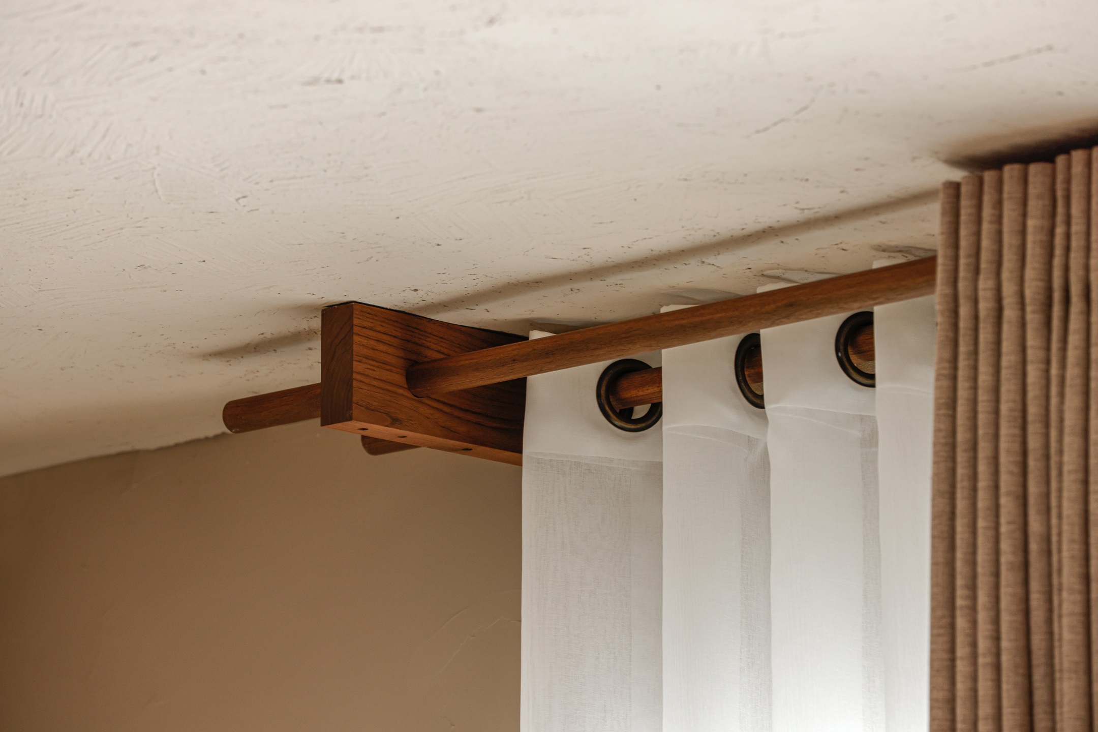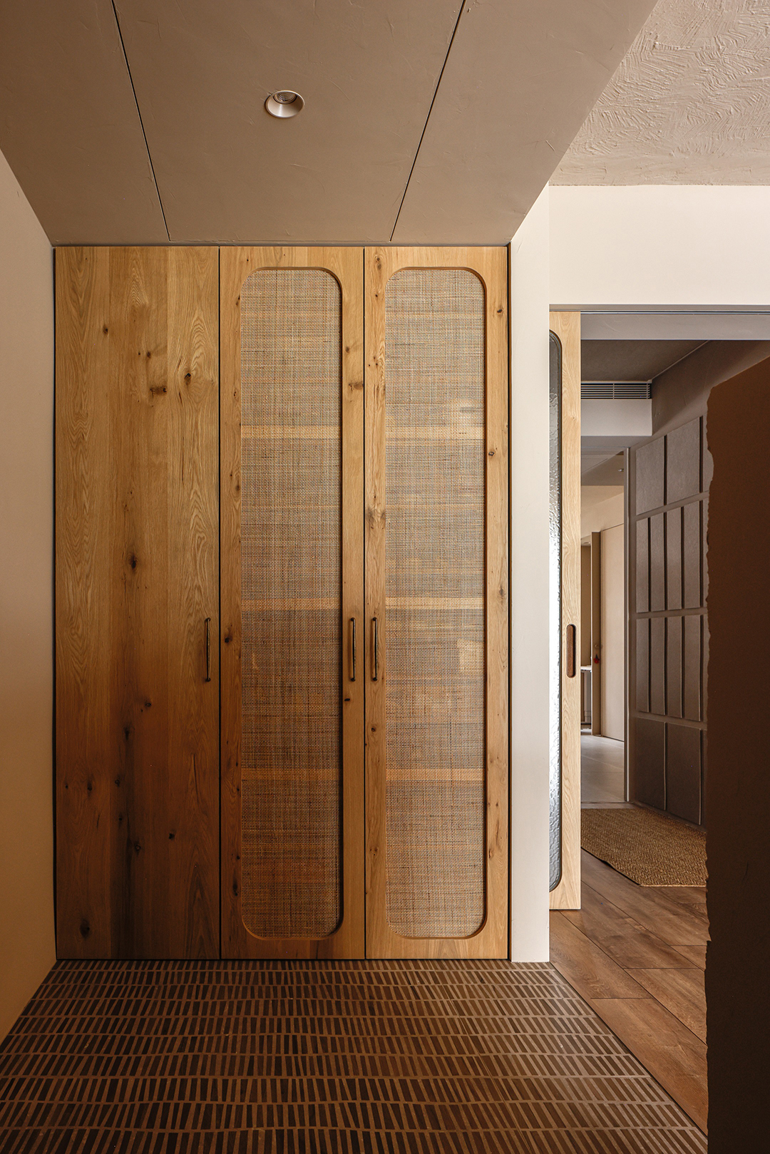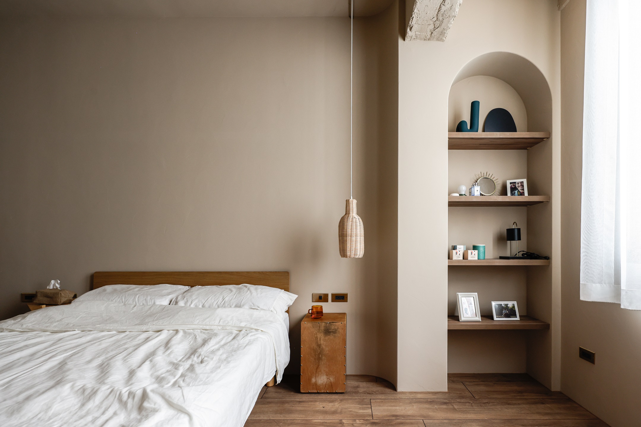 面對不斷成長的未來,客房空間保留了彈性運用的留白,可以根據使用需要變成DEE的繪畫室、TRU的攝影棚,或是LUCY的遊戲房使用。主臥室延續全室溫暖氛圍,柚木訂製的把手和衣桿、編織的藤片衣櫃、以及窗簾透進的自然光線,都將成為LUCY對於家的初始印象,在爸爸和媽媽的愛中持續成長,留下無數最美好的時刻。