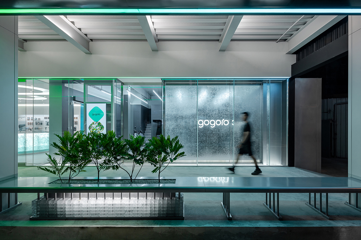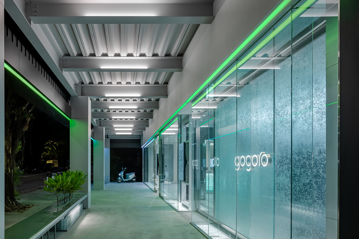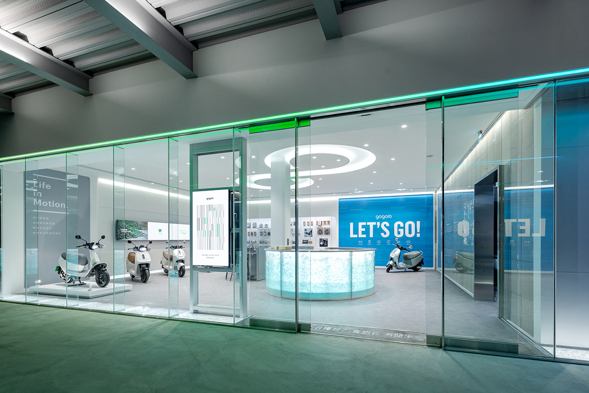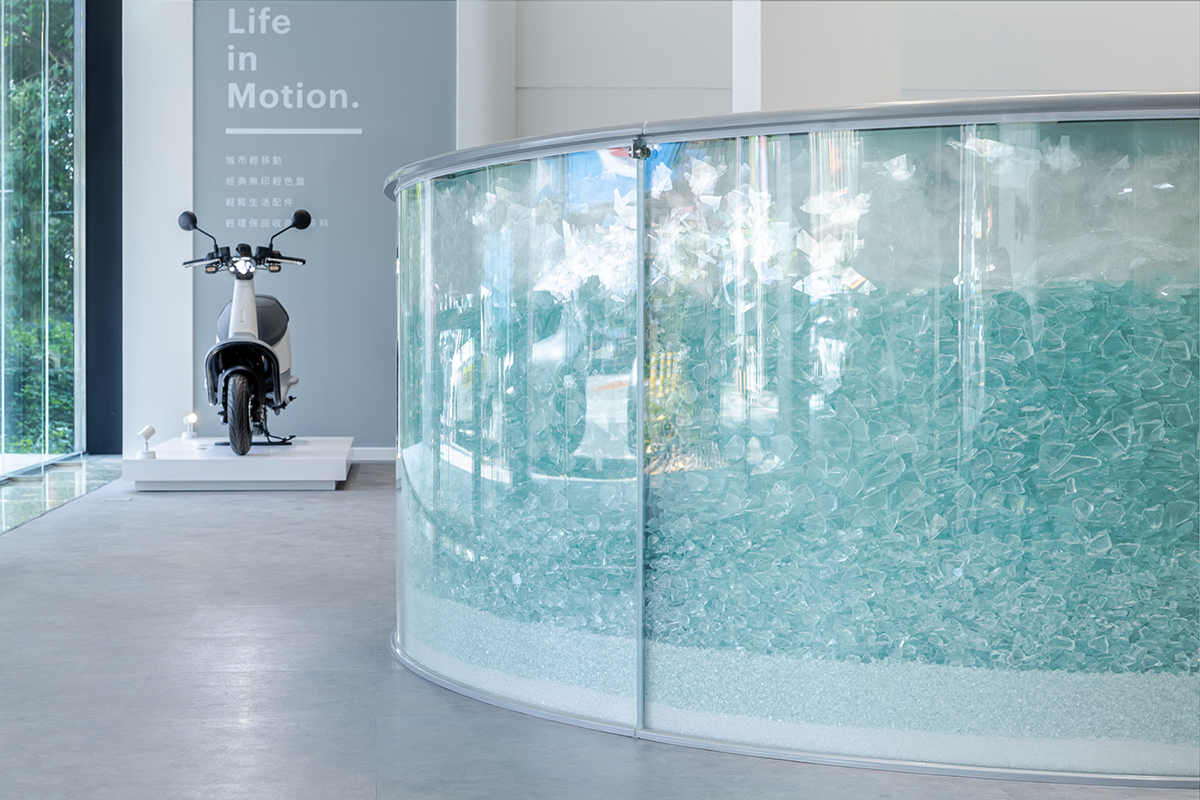Embedded in the floor at the entrance, the metal characters of these three powerful greetings in Hakkanese send kind regards to Zhudong people. Zhudong has been a stronghold of the glass industry since the Japanese colonial period. Therefore, with the introduction of glass, a kind of building material that is 100% recyclable, this concept store rekindles the memories shared among senior citizens of Hsinchu. This store further reflects the concern and commitment of Gogoro and Spring Pool Glass regarding sustainable energy and Taiwan’s local flavor. We expect this concept store to become part of the local life and start a new trend for sustainability!