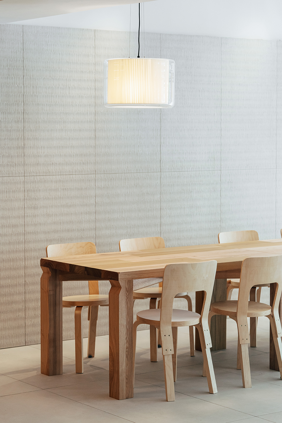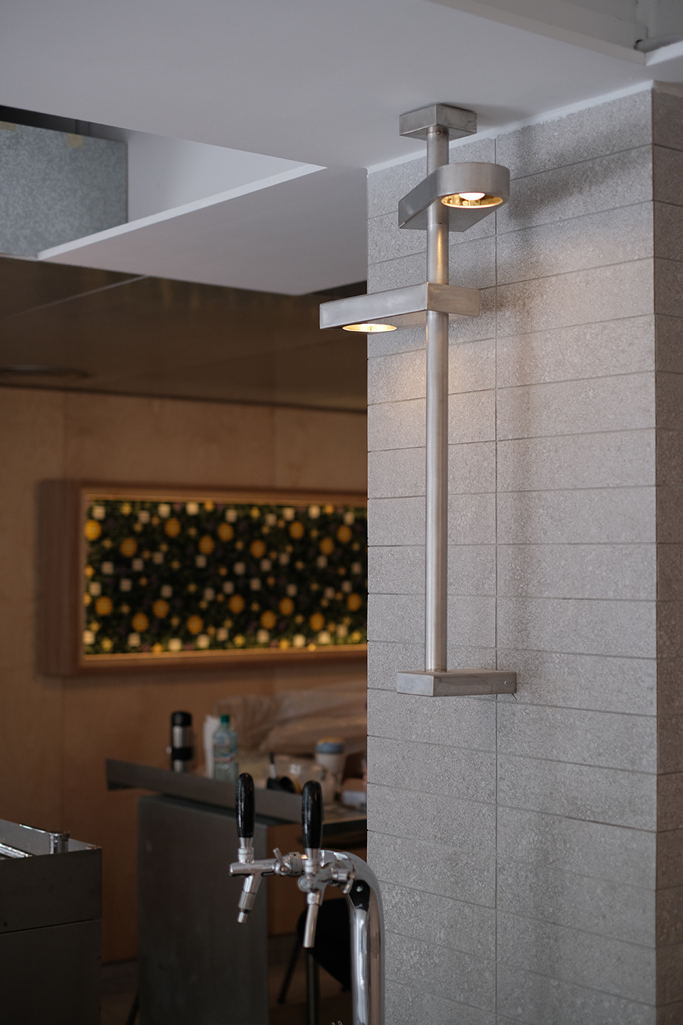 談定與 Marset 的合作後,先把心目中最合拍的建材選好,搭配 BRUN 不然空間風格必備的淺色木質和不鏽鋼金屬元素,維持 BRUN 空間風格的一貫個性。照明上強調傳遞溫和、親切感受,透過各式的造型燈具與設計脈絡相輔相成,為空間增添詩意與層次,使各個區域都有其看點。