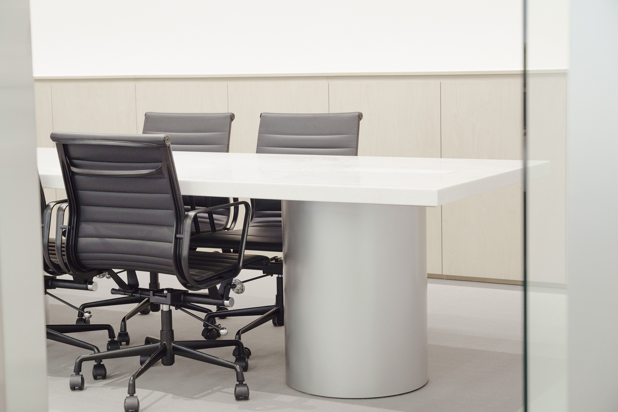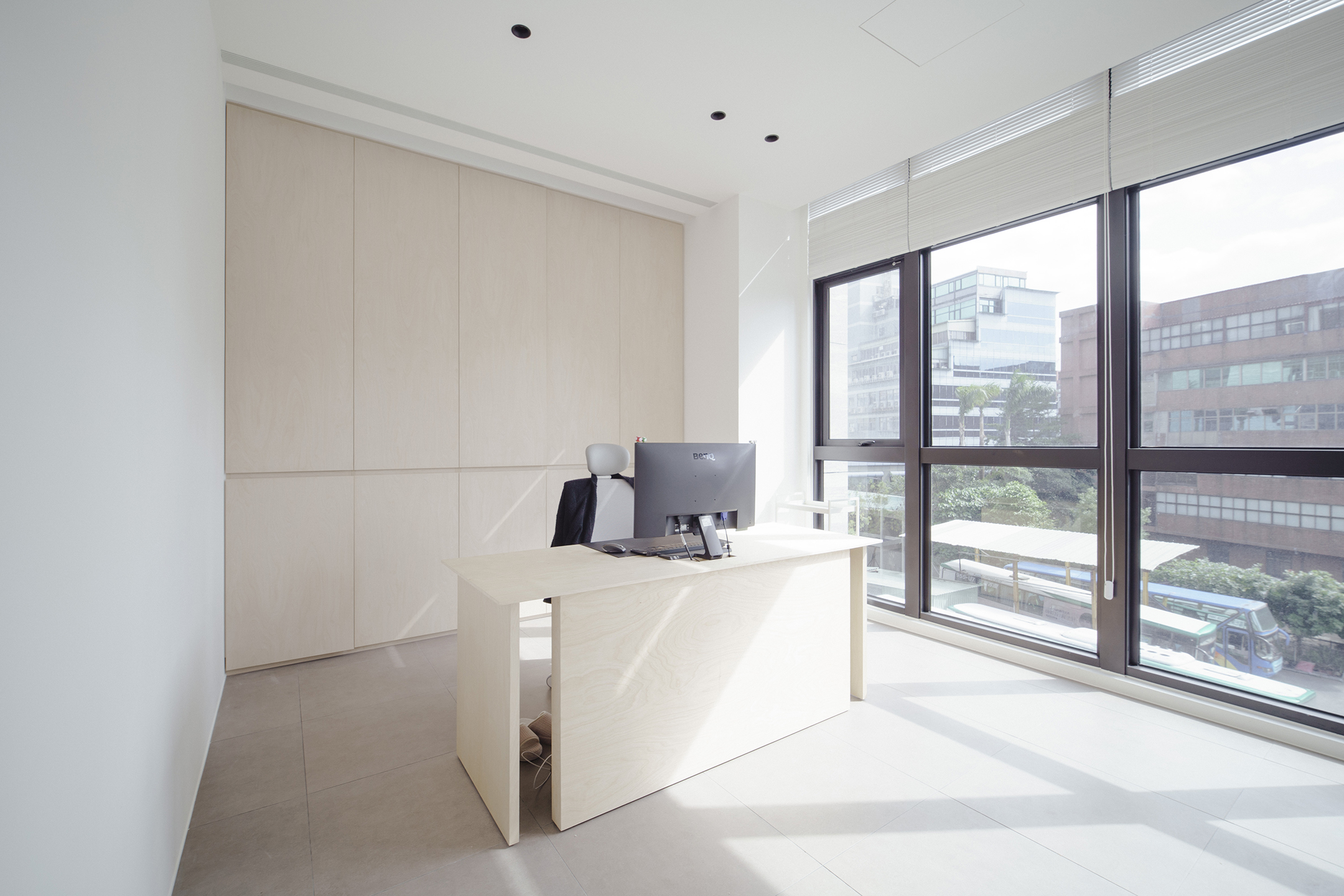 平面配置上,以中央開放辦公區為核心,兩側依序安排獨立辦公室、會議室、茶水間與材料室,構築出層次分明且流暢的動線,兼顧協作與專注所需,讓工作節奏更加順暢。
